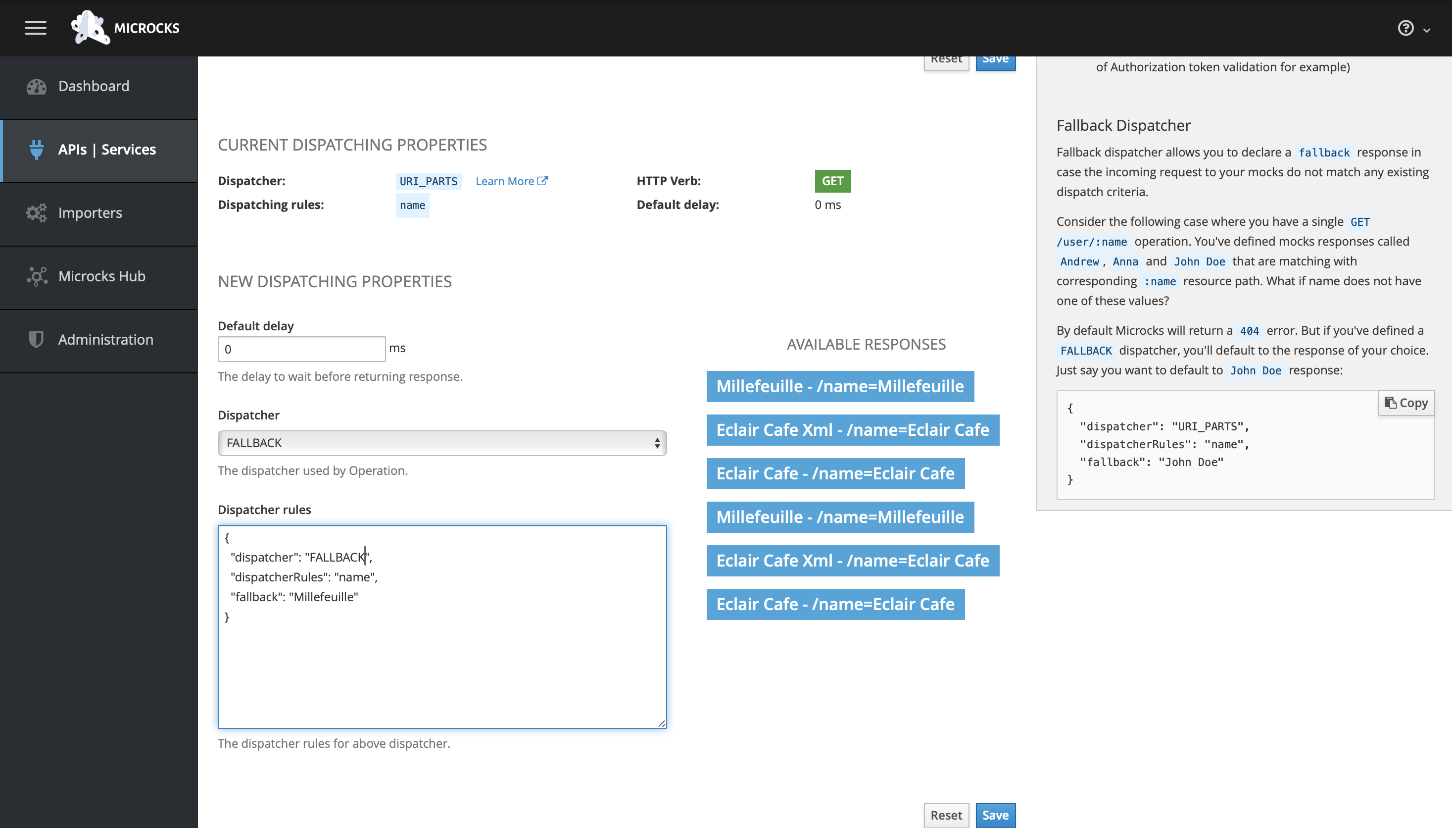 "dispatcherRules": "{\n \"dispatcher\": \"URI_PARTS\",\n \"dispatcherRules\": \"name\",\n \"fallback\": \"Millefeuille\"\n}"