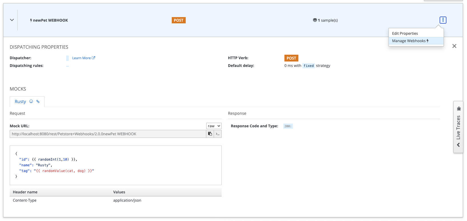 {{ randomInt(1, 10) }}or others to provide dynamic content but you will not be able to use expression based on request content like{{ request.body/name }}. Incoming request does not exist!