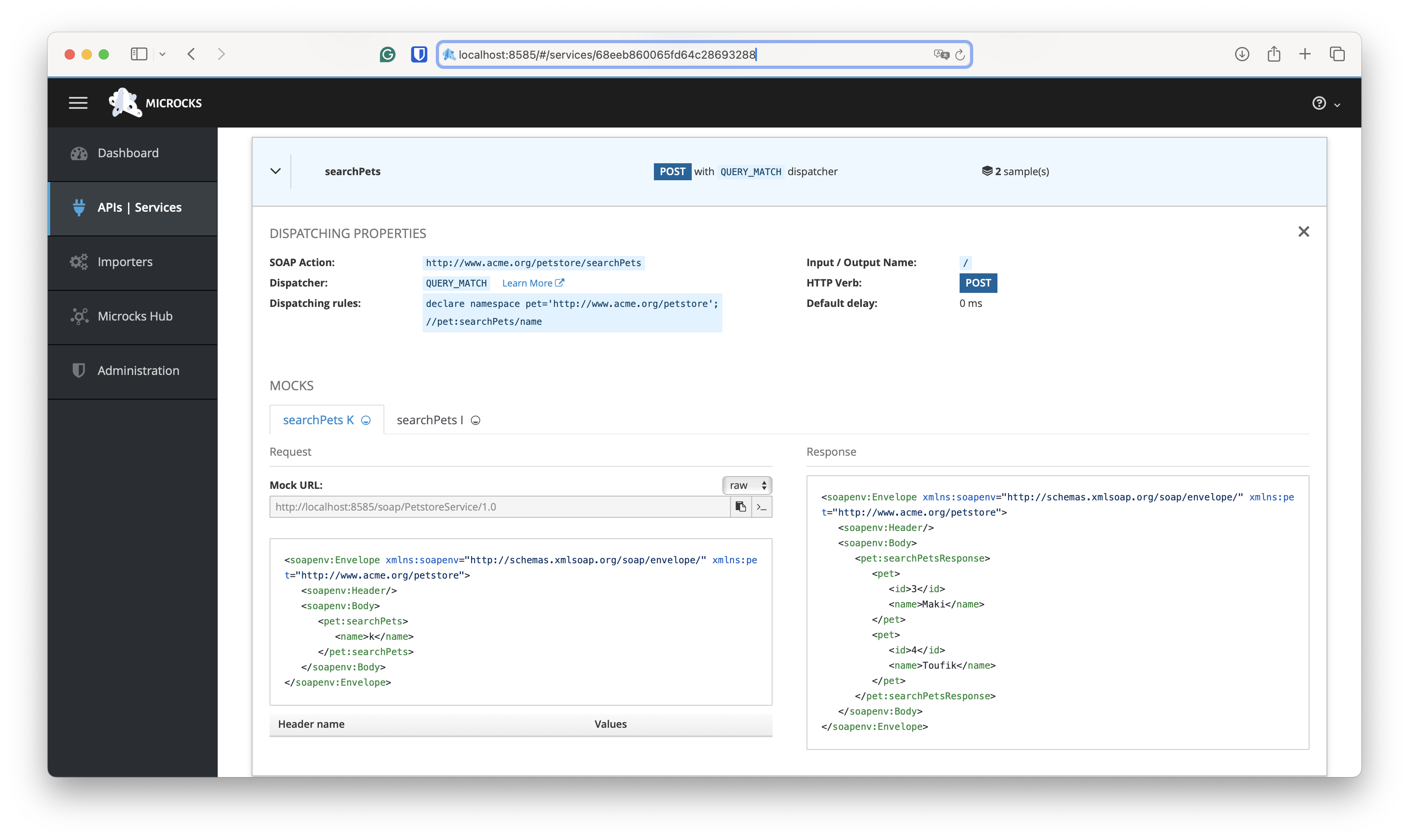 Import this updated SoapUI Project back in Microcks and see the results: